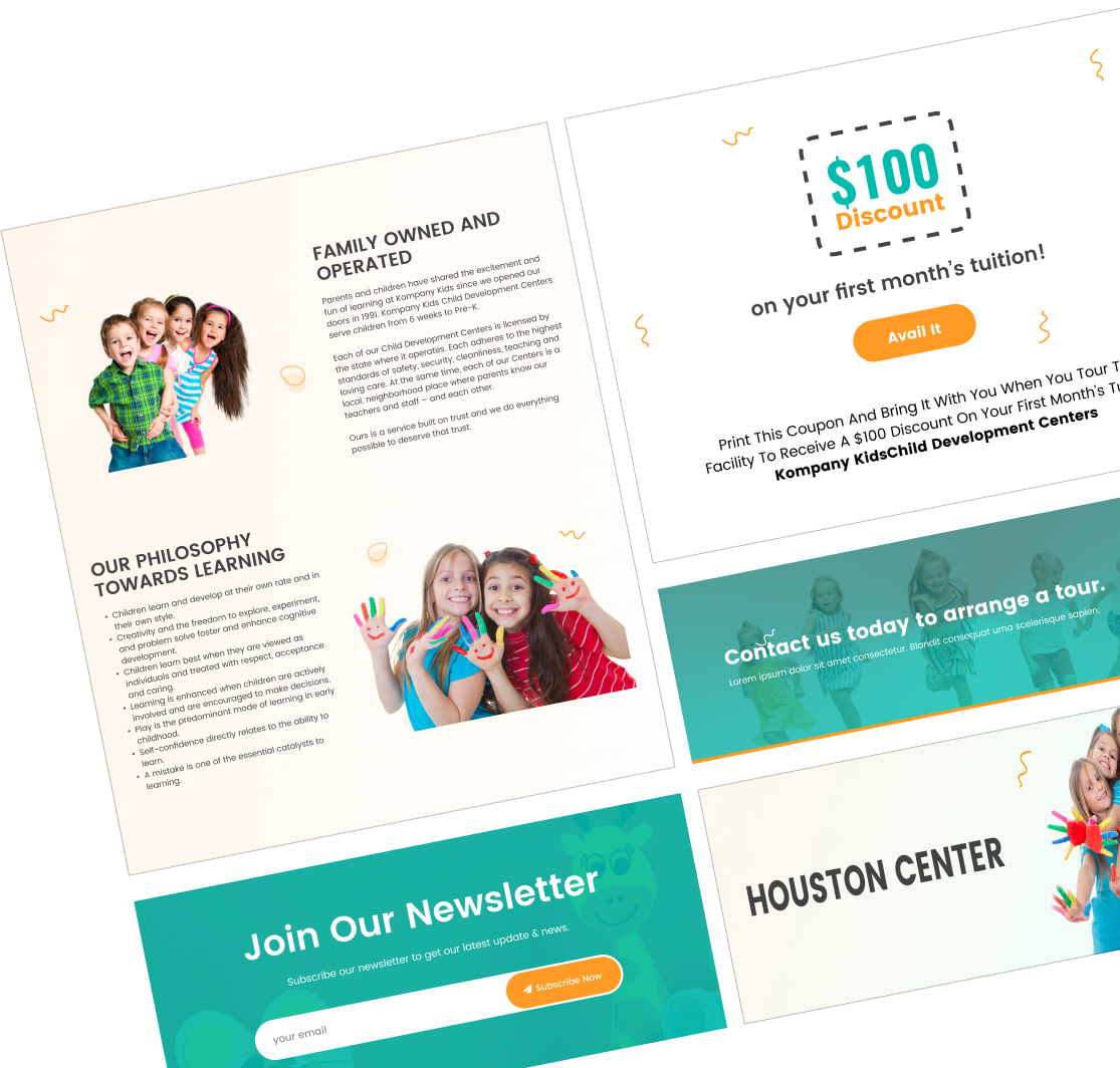 We use primary colors with a modern mix of Green and orange, plus all-new photography. We utilized new sharp images of related departments, combined with Poppins typography with simple white space.